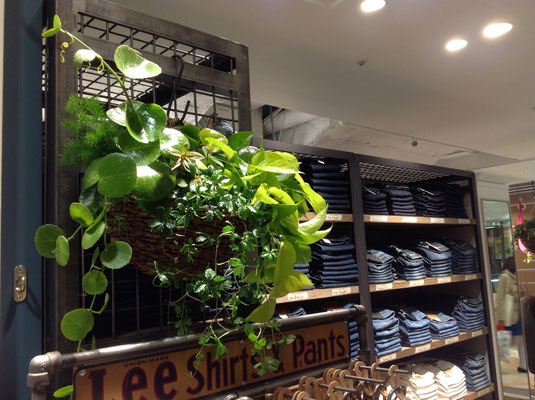 Structural planting with leafy plants for Men's area and sweaty atmosphere for Ladies area.